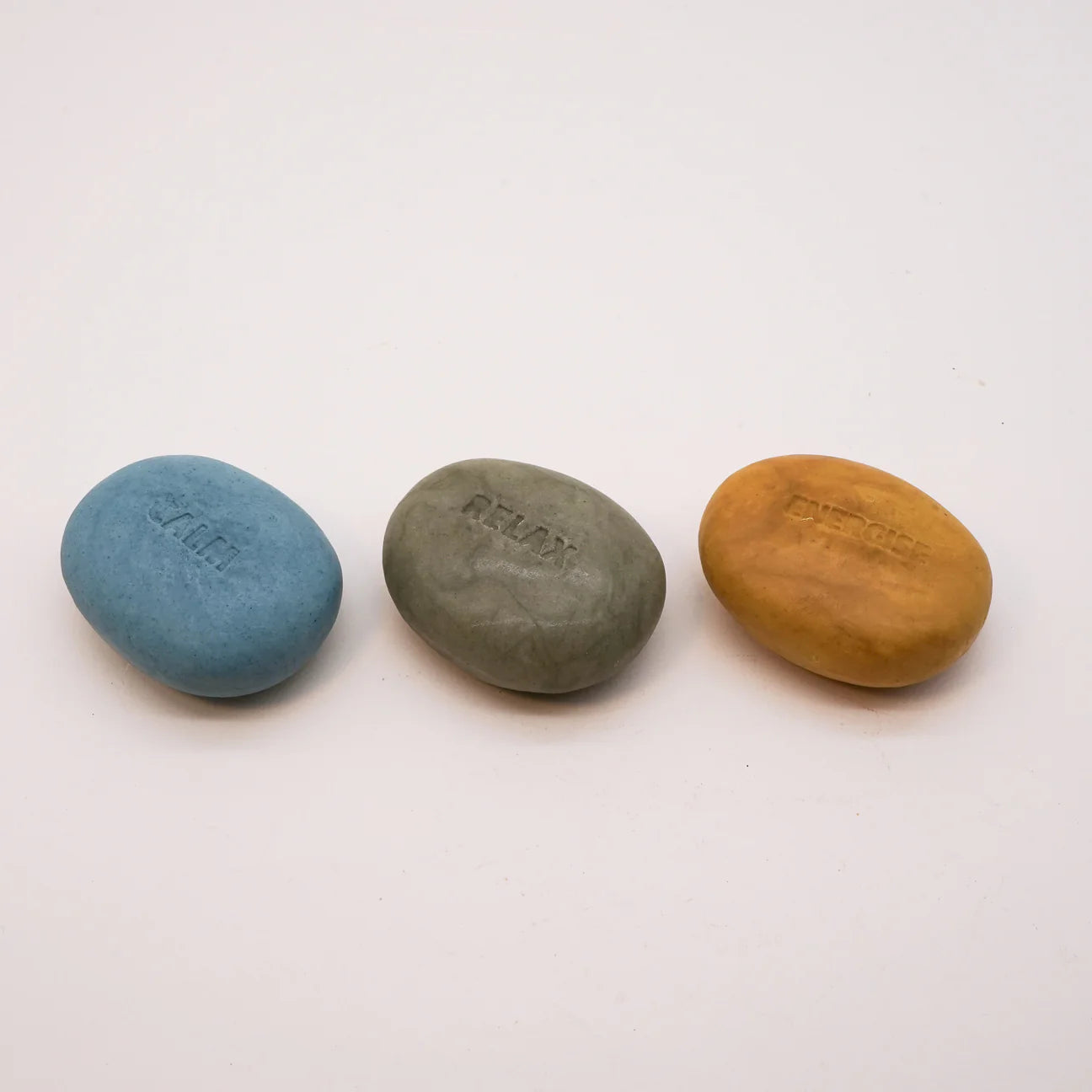 These handcrafted soaps are made using 100% natural ingredients and are 100% vegan. Each soap is shaped into a pebble like size, fitting comfortably in the pam of the hand and engraved with words such as 'relax' , 'calm' and 'energise' to set the mood for the day.