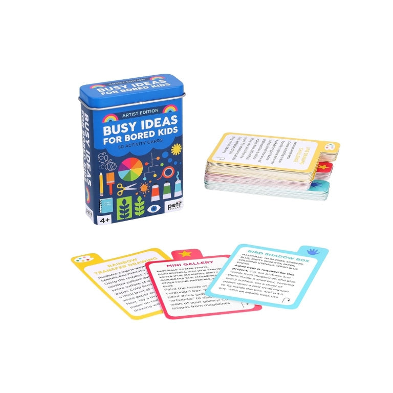 Need some ideas to brighten up kids’ days, spark creativity and imagination, or get them up and active and away from screens? Pick a card from Busy Ideas for Bored Kids: Artist Edition!