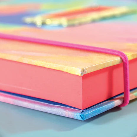 Capture your thoughts in style with this vibrant hardback journal. Featuring colour-dipped pages, a sophisticated gold nameplate, and a secure elastic closure, this A5 notebook combines functionality with fun design. The sturdy rivet-bound cover and quality lined pages make it perfect for daily journaling, planning, or as a thoughtful gift for the organised and creative.
