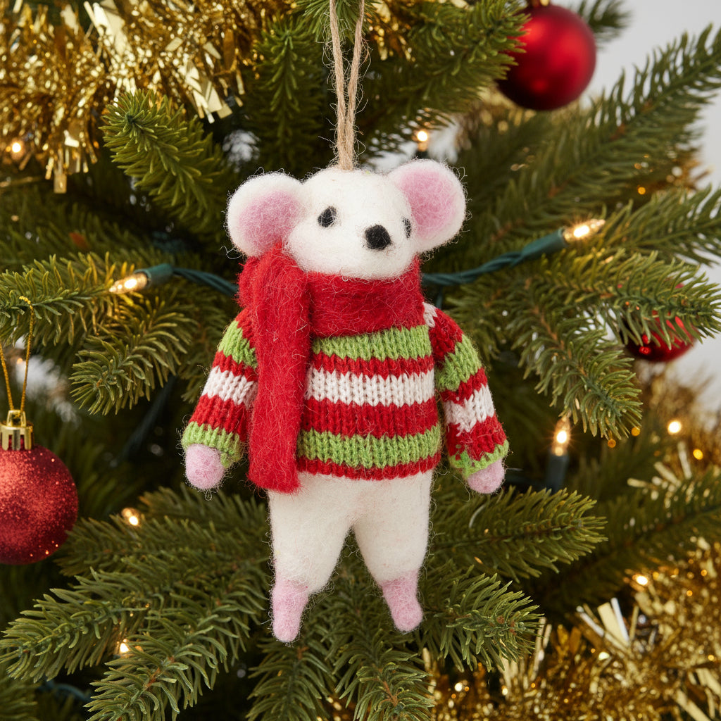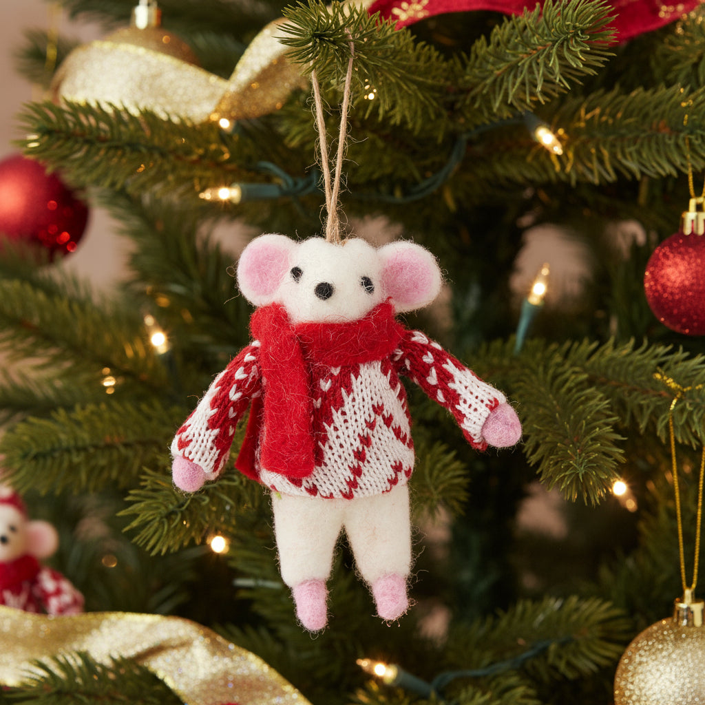 These festive mice are the perfect addition to your decor this season with knitted jumpers and matching scarves!