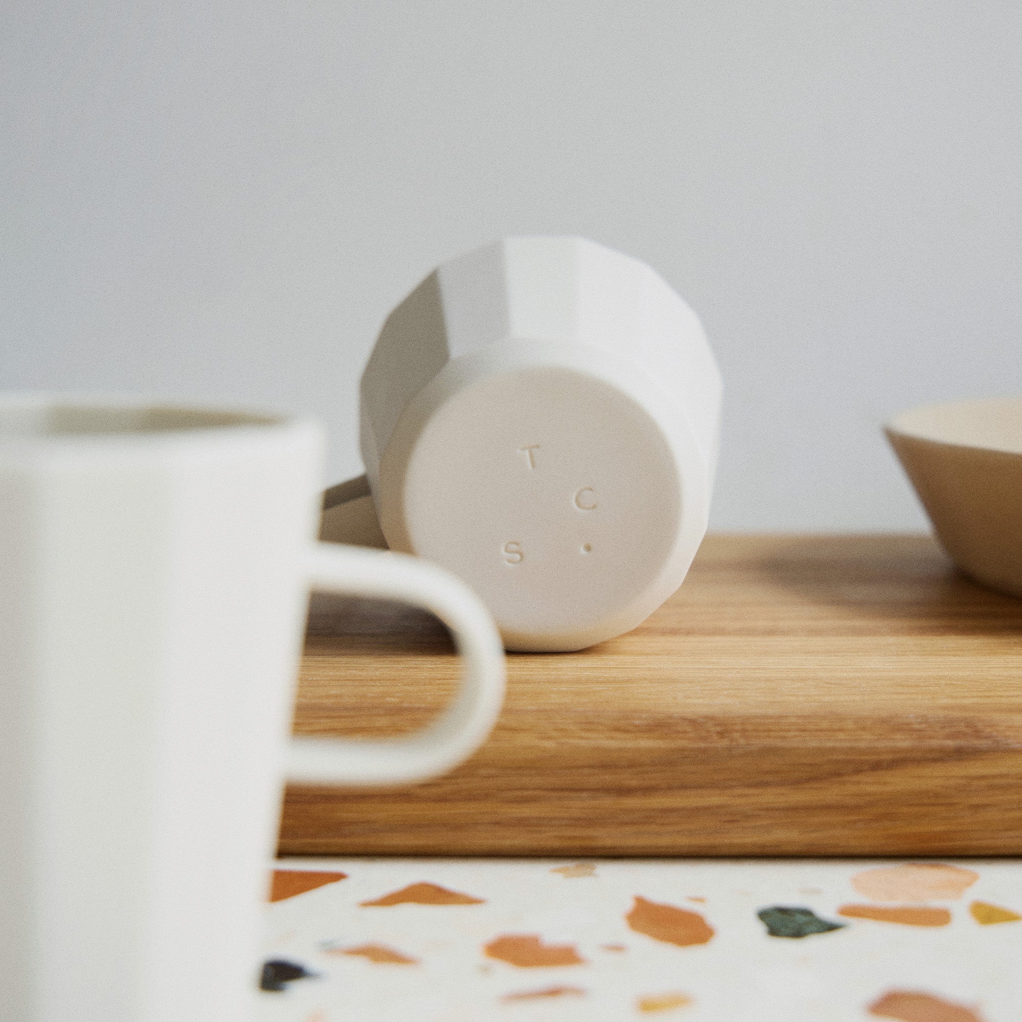 Designed by Studio Word for The Conran Shop, the Fade porcelain pieces are inspired by traditional Korean roof tiles. Each features a gently faceted, unglazed exterior and a smooth glazed interior, creating subtle plays of light across the surface.
