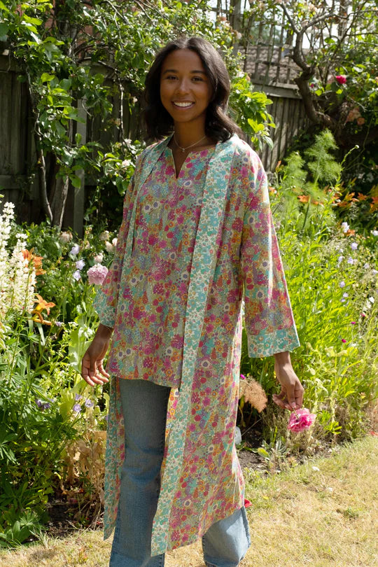 Long Kimono Robe in Lime Ciara Liberty Fabric