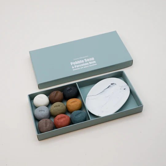 Crafted with 100% natural ingredients, vegan and cruelty free the coconut oil base locks in hydration, keeping skin soft and supple. The hand-formed individual soaps come with words such as calm, fresh, serene, pure, relax and energise in a mix of colours. Accompanied by a hand crafted porcelain dish.