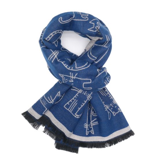 This stunning woven scarf in a gorgeous navy and pink colour combination showcases a charming repeat pattern of illustrated cats.