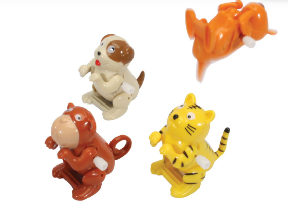 Wind up these clockwork pets to make them turn backwards somersaults and land on their feet over and over again!