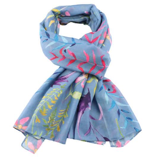 Wild Flower Denim Blue Scarf